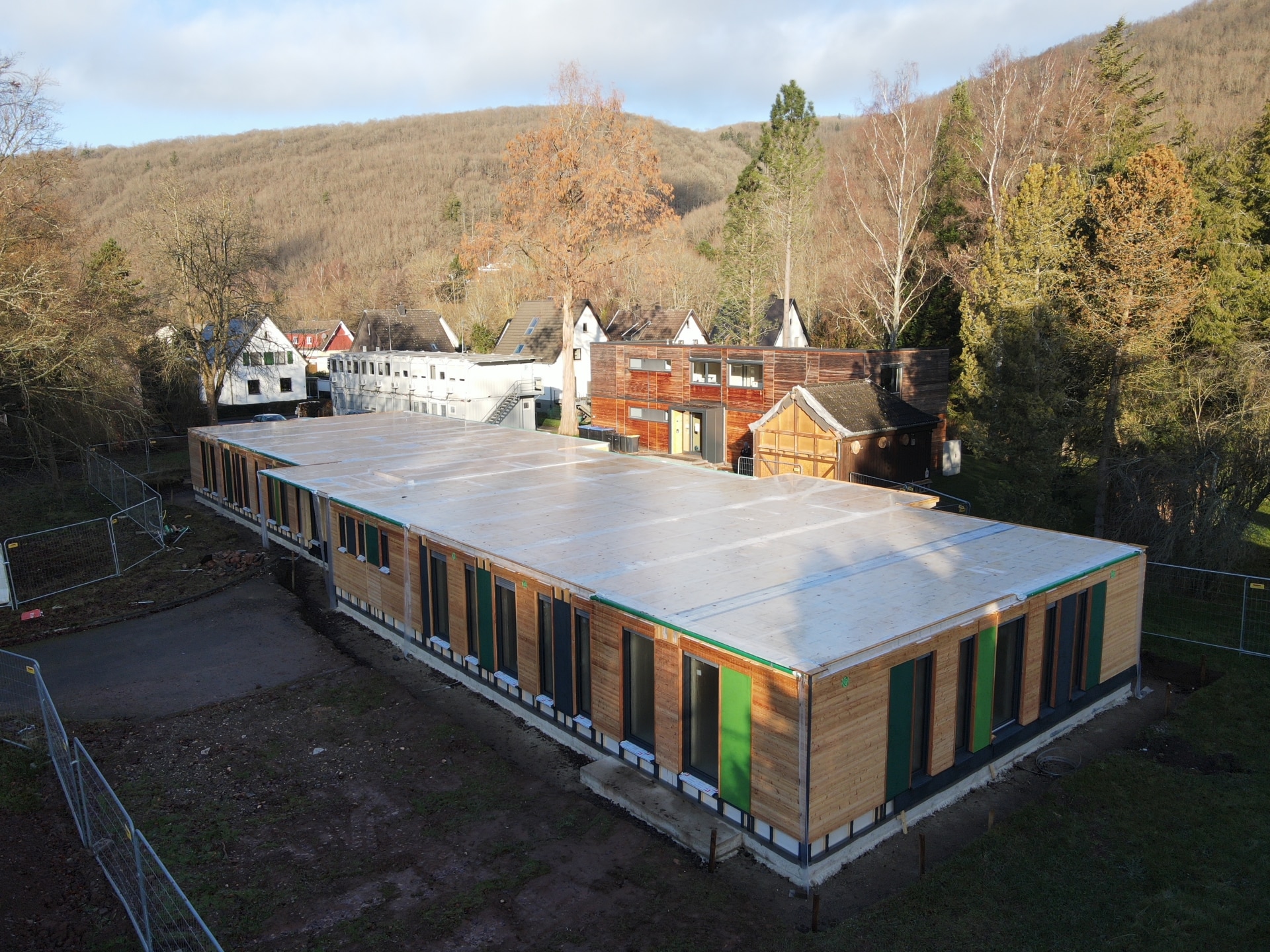 Neue Kapitel wurden dieses Jahr auch für die Nationalparkverwaltung selbst aufgeschlagen: Nicht nur die Eingliederung in das Landesamt für Natur, Umwelt und Klima (LANUK), sondern auch der Abriss des Verwaltungsgebäudes aus den 1950er Jahren in der Gemünder Urftseestrasse aufgrund irreversibler Flutschäden standen an. Im Herbst startete der Neuaufbau eines Verwaltungsgebäudes mit modernen Büromodulen aus Holz, in die die Verwaltung im kommenden Jahr erstmals vereint in einem Gebäude einziehen wird.