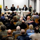 Bild 2 und 2a: Mit etwa 130 Besuchern bei der Podiumsdiskussion zur Rückkehr des Wolfes nach NRW stieß die Veranstaltung im Nationalpark-Zentrum Eifel auf große Resonanz. (Foto: Nationalparkverwaltung Eifel/A.Simantke/M. Weisgerber)