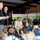 Bild 2: Umgeben von großen und kleinen Besuchern der Wildniswerkstatt eröffnet Dr. Michael Röös, Leiter der Nationalparkverwaltung Eifel, den Tag der offenen Tür anlässlich des Jubiläums. Genau 10 Jahre ist es her, dass die Umweltbildungseinrichtung in Heimbach-Düttling ihre Pforten öffnete. (Foto: Nationalparkverwaltung Eifel/A. Simantke)
