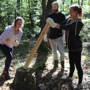 Unter fachkundiger Anleitung der Ranger der Nationalpark-Holzbauwerkstatt heißt es Erde schaufeln, klopfen und Pfähle spitzen. Eine deftige Brotzeit zu Mittag gibt wieder Energie.
