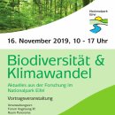 Schleiden-Gemünd, den 14.10.2019. Wie entwickeln sich die Wälder und Bäche im Nationalpark Eifel und ihre Tier- und Pflanzenarten? Wie zeigt sich der Klimawandel in der Eifel und was kann er für seine natürlichen Lebensräume bedeuten? Die Nationalparkverwaltung Eifel lässt die Öffentlichkeit im Rahmen einer großen Forschungstagung an den Ergebnissen z.T. langjähriger Forschungsprojekte teilhaben. Unter dem Titel „Biodiversität & Klimawandel“ sind Interessierte und Fachleute für Samstag, den 16. November 2019 ins Forum Vogelsang IP eingeladen. Von 10 bis 17 Uhr gibt es im dortigen Panorama-Seminarraum insgesamt zehn Vorträge zu Artenvielfalt, Monitoring, Neubürgern aus der Tierwelt und Klimawandel. Die Veranstaltung steht allen Interessierten offen und ist kostenfrei.