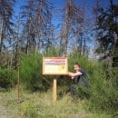 Neue Info-Tafeln weisen auf besonders gefährliche Wegeabschnitte aufgrund abgestorbener Fichten hin