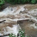 In Heimbach ist der Weg von der Stadt aus zum historischem Kraftwerk nach zwei Erdrutschen nicht passierbar.